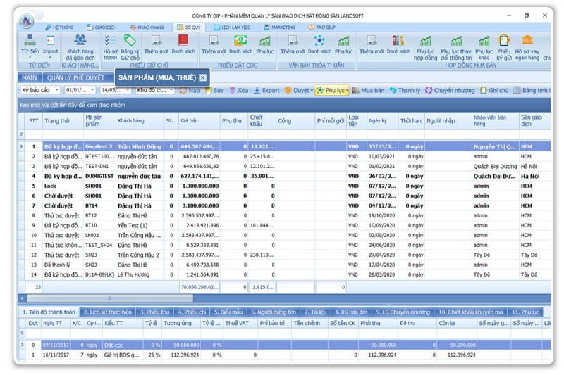 - Quản lý giao dịch: LandSoft giúp doanh nghiệp theo dõi các giao dịch bất động sản, bao gồm quá trình giao dịch, các văn bản, giấy tờ liên quan,… Phần mềm cũng cung cấp các tính năng quản lý hợp đồng, quản lý thanh toán,…